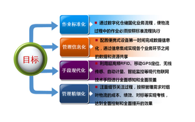 實(shí)現(xiàn)中心倉(cāng)庫(kù)煙葉的入庫(kù)、出庫(kù)、移庫(kù)、倉(cāng)儲(chǔ)、盤點(diǎn)、物流的數(shù)字化和可視化管理。包括基于 RFID煙包標(biāo)簽的定位和溯源、倉(cāng)儲(chǔ)各環(huán)節(jié)精細(xì)化管理、煙葉庫(kù)溫度濕度監(jiān)控、可視化倉(cāng)儲(chǔ)展示、數(shù)字化管理等。所涉技術(shù)包括移動(dòng)互聯(lián)、超高頻RFID、GPS定位、虛擬仿真、無(wú)線溫濕度傳感、智能視頻分析與監(jiān)控、自動(dòng)計(jì)量傳送帶等,運(yùn)用標(biāo)準(zhǔn)質(zhì)量控制PDCA循環(huán)對(duì)供應(yīng)鏈上游進(jìn)行引導(dǎo)和控制,采集下游反饋信息改進(jìn)物流工作水平,達(dá)到煙葉物流工作的全面控制和全面提升。