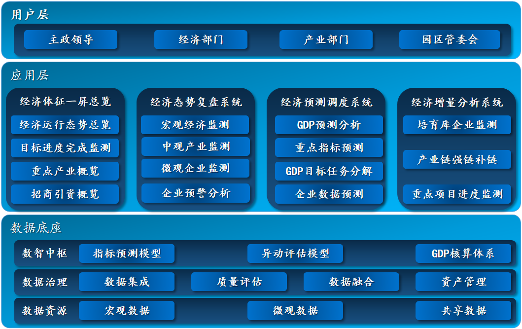 強化目標導(dǎo)向,對海量宏觀經(jīng)濟數(shù)據(jù)進行整合,通過模塊化、可視化、智能化的手段,構(gòu)建起宏觀經(jīng)濟監(jiān)測、分析的指標體系,全面分析地方經(jīng)濟發(fā)展情況。
